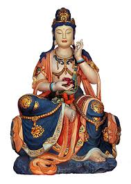 Quan Yin, alone among Buddhist gods, is loved rather than feared and is the model of Chinese beauty. Regarded by the Chinese as the goddess of mercy, she was originally male until the early part of the 12th century and has evolved since that time from her prototype, Avalokiteshvara, "the merciful lord of enlightment," an Indian bodhisattva who chose to remain on earth to bring relief to the suffering rather than enjoy the ecstasies of Nirvana.